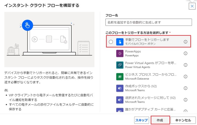 それでは、PowerAutomateを起動して、作ってきましょう。