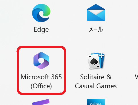 Windowsスタートボタンをクリックすると、アプリ選択ウィンドウが開くので、「Microsoft 365 (Office)」をクリックします。