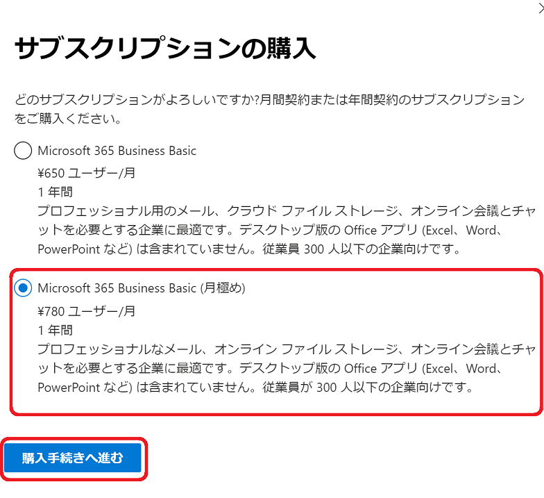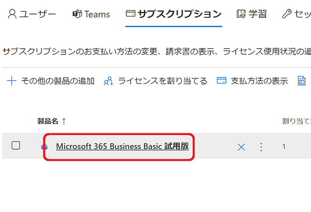 私の場合は、Microsoft 365 Bussiness Basic 試用版 です。