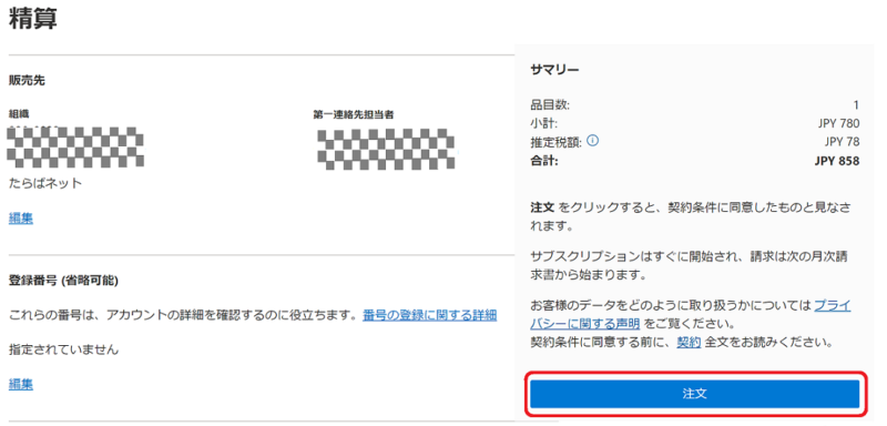 今回は「月極め」を選択し、「購入手続きへ進む」ボタンをクリックしました。