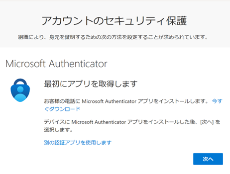 5.アカウントのセキュリティ保護画面が表示された場合、以下を実施