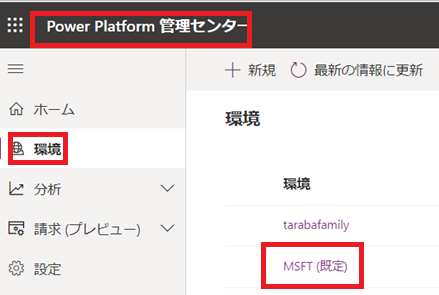 2)Power Platform管理センターからユーザーにアプリの権限を追加