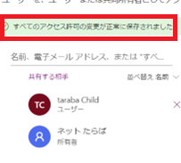 「すべてのアクセス許可の変更が正常に保存されました」と表示されたら、右上の × 閉じるボタンで閉じる