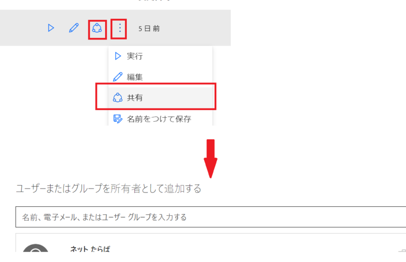 3.フロー(PowerAutomate)にも同様に1)のユーザーを追加