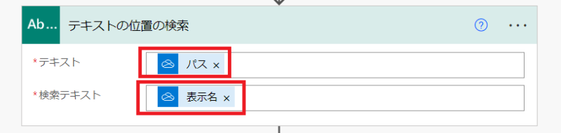 「テキストの位置の検索]で、ファイル名の文字位置を取得し、